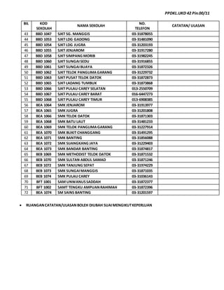 PPD KLANG SEKOLAH MENENGAH KEBANGSAAN KAMPUNG JAWA JALAN RAJA NONG 41000 KLANG SELANGOR Nombor Telefon. 110 KEMUNINGSARI LOR - PANTI. SEKOLAH MENENGAH KEBANGSAAN JALAN KEBUN Kod Mata Pelajaran Bil.